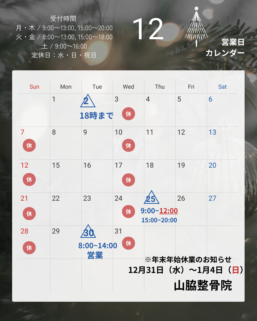 | 受付時間 | 月 | 火 | 水 | 木 | 金 | 土 | 日・祝 |