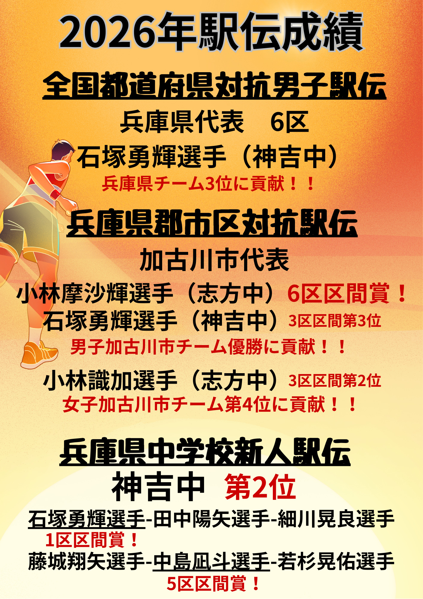 TOP ブログ一覧 2026年 駅伝成績 2026年 駅伝成績 投稿日:2026年3月17日 当院では頑張るスポーツ選手を応援しています!(^^)! ブログカテゴリー 通院中のスポーツ選手情報 院からのお知らせ アーカイブ 2026年 (1) 2025年 (8) 2024年 (6)